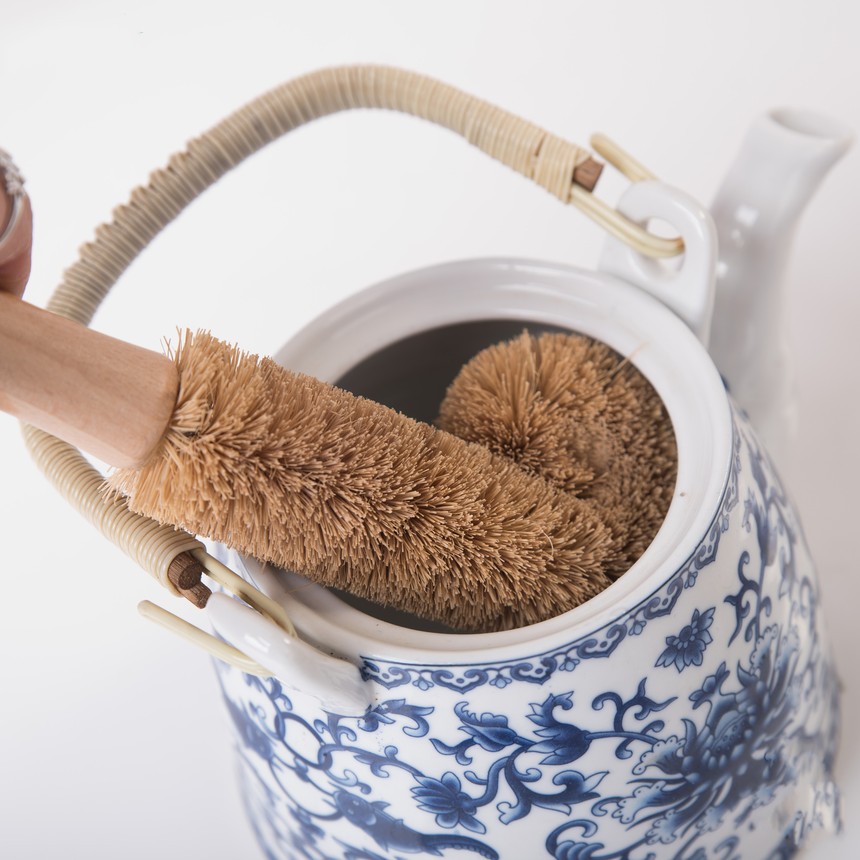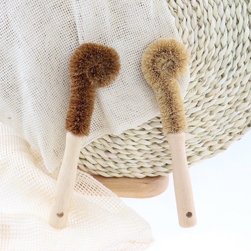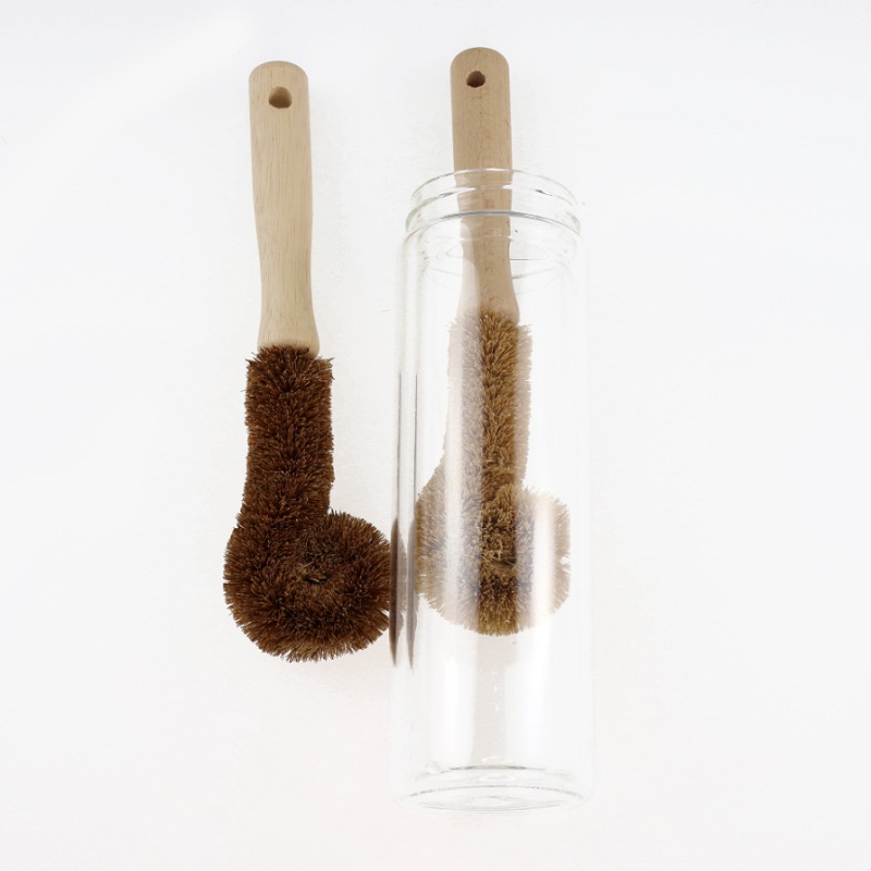 About this itemMaterial: Natural material as coconut fiber brush with wood holder. Cleaning ability: Durable bristles easily scrub away food, stains and dirt, safe for use on non-stick surfaces. Ergonomics design: Easy to clean all the angle of the bottle , the long humanized wooden handle, comfortable grip, protect your hands Lanyard: It's convenient to hanging on the wall of kitchen. Environmental protection:Imported, Functional and evironmental friendly.