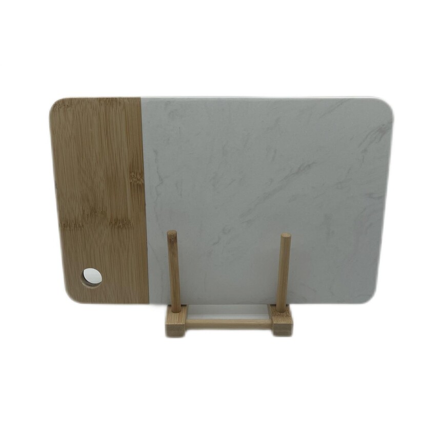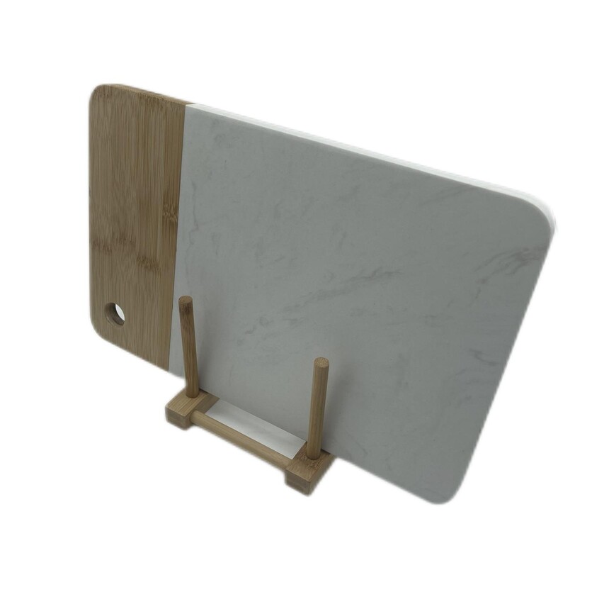 MADE FROM SOLID MARBLE AND NATURAL WOOD: Wooden cutting boards sustainably sourced from the highest-grade (FAS) premium selection,coming in its unique and natural color and grain. Wood for its durability, stability and beauty,for preparing or serving fruit,vegetables,meat or bread.