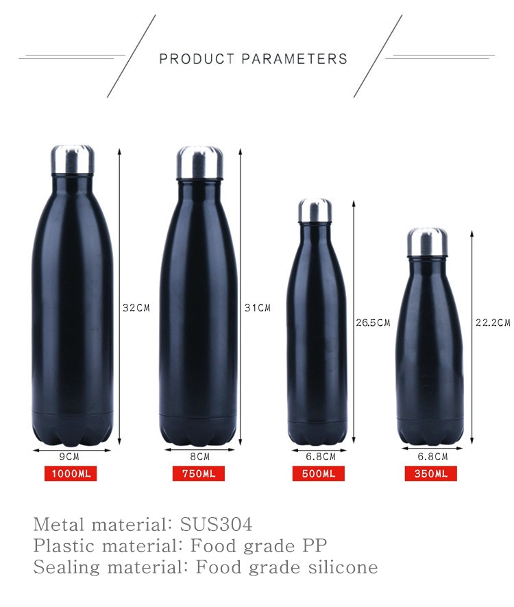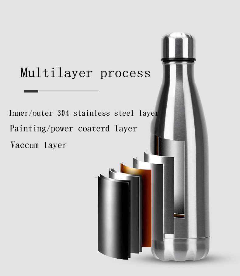 Stainless steel 350-1000 ML vacuum cola shaped water bottle with customized logo