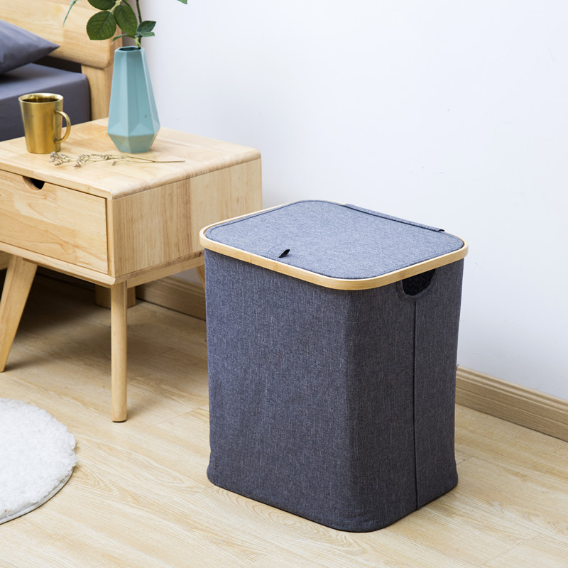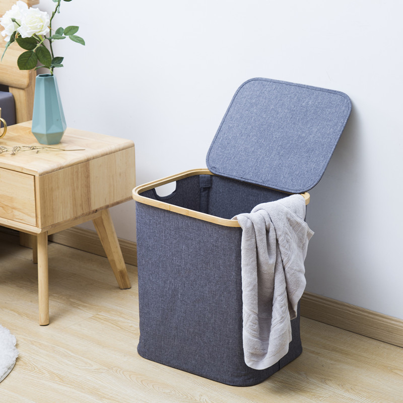 Rectangle Foldable Bin Storage Folding Bamboo Laundry Basket